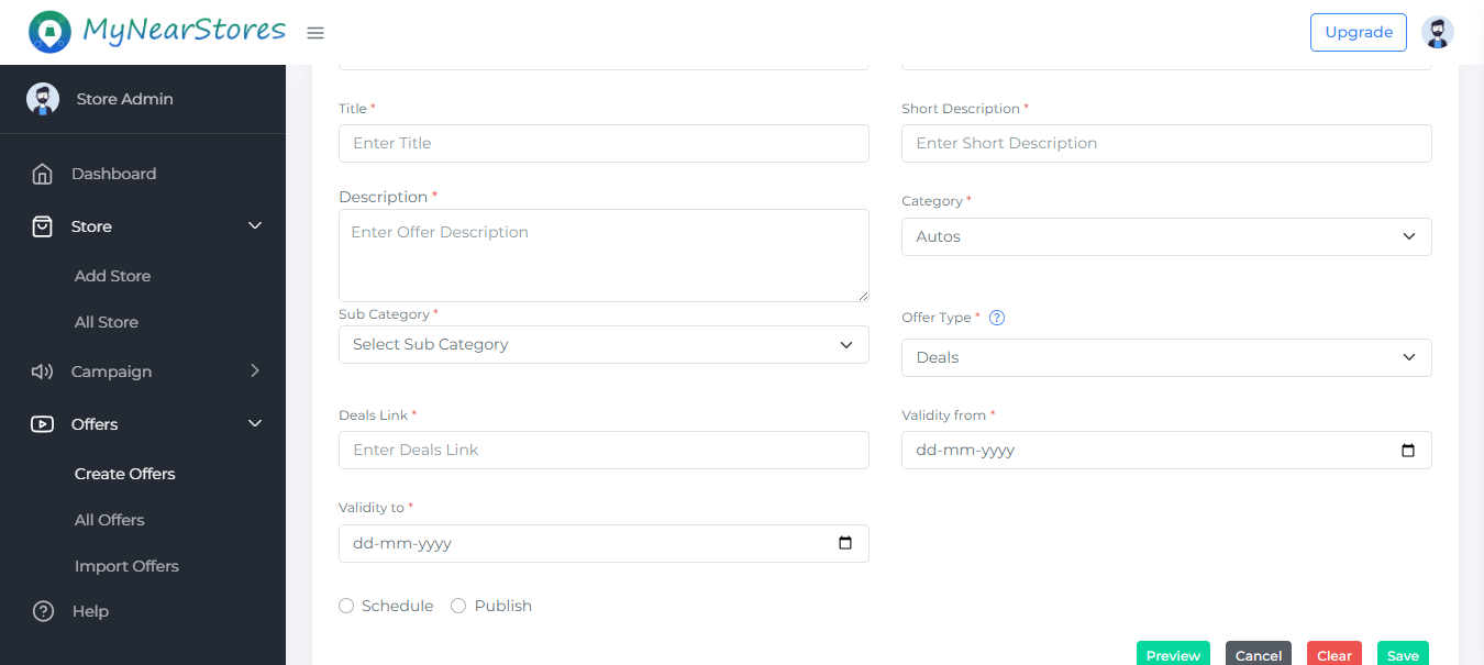 - on clicking schedule button, it show schedule date and time option, enter the required details and click save button, on tha schedule time offer will publish
