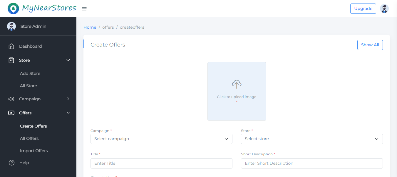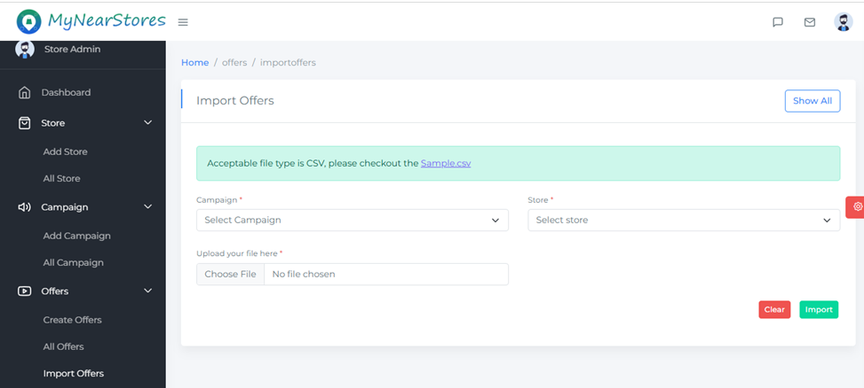 3. Offer Management – Click on the Offers option in the menu. It will have three sections: Create Offers, All Offers, and Import Offers.