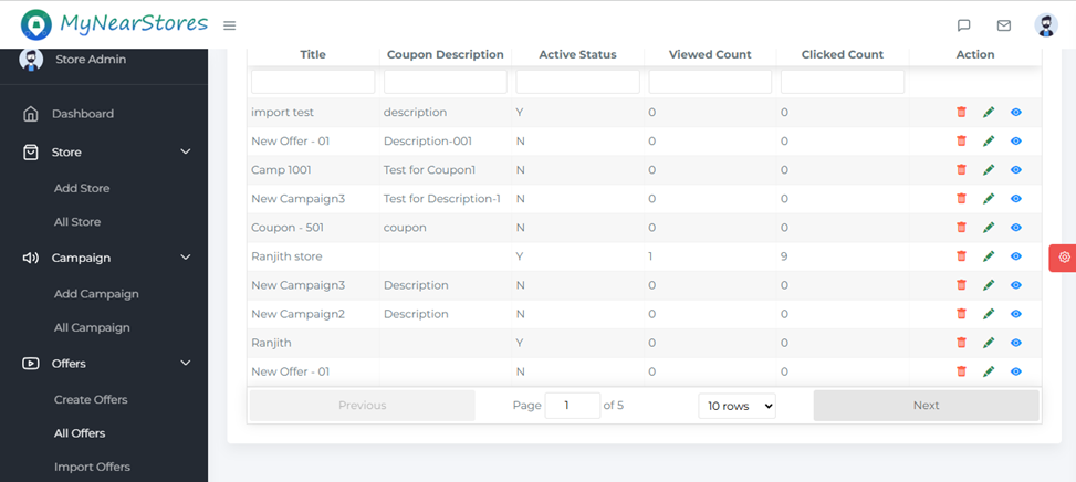 3.2. All Offers – This section displays all the created offers. You can view, edit, and delete offers.